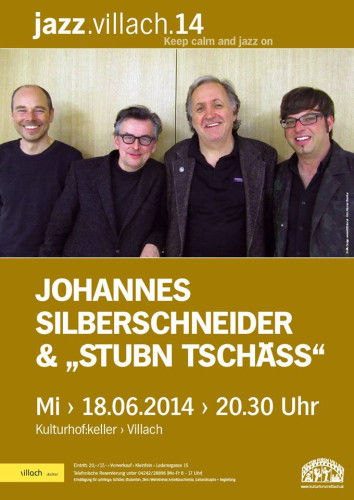 [ Liebe Jazzfreunde! Mit Lyrik und Musik beschließen wir das Frühjahresprogramm von jazz.villach.14. Am **Mittwoch, dem 18. Juni, um 20.30 Uhr** gastiert im **Kulturhof:keller Villach** der bekannte Schauspieler **Johannes Silberschneider** mit der Gruppe **„Stubn Tschäss“** „Die ZEIT“ hält Johannes Silberschneider, den Hauptdarsteller des Oscar nominierten Kurzfilms „COPYSHOP“, für einen „der umtriebigsten und wandlungsfähigsten Schauspieler im deutschen Sprachraum“. Im Vorjahr gewann Silberschneider den „diagonalen Schauspielpreis“ und ist derzeit im Schauspielhaus Graz in der Aufführung eines Thomas Bernhard – Stücks in der Hauptrolle zu sehen. Nach über 120 Kinofilmen, bzw. Fernsehproduktionen und weiteren 60 Theaterproduktionen kommt Silberschneider für seine nächste Lesung musikalisch unterstützt von „Stubn Tschäss“ in den Kulturhof:keller nach Villach. Die Musik von „Stubn Tschäss“ dient als verstärkendes Element der erdigen, schrägen, steirischen Mundartgedichte, die Silberschneider rezitiert. Unter Verwendung von unterschiedlichen musikalischen Stilmitteln (Blues, Jazz, Latin-Jazz, Funk, Samba und afrikanischen Klängen) entsteht eine sanfte, fließende Musik. Die feinfühlige Interaktion der Musiker erlaubt Ihnen auch die spontane musikalische Improvisation. Ein krönender Abschluss des Jazzfrühlings Villach. #### Line-up: Johannes Silberschneider (Lyrics) Klaus Ambrosch (Gitarre) Chris Seiner (Bass) Kurt Gober (Percussion) #### Karten: 20,–/17,– € Kartenvorverkauf: Kaffee Kleinfein, Lederergasse 17, Villach Telefonische Reservierung: 04242 28896
