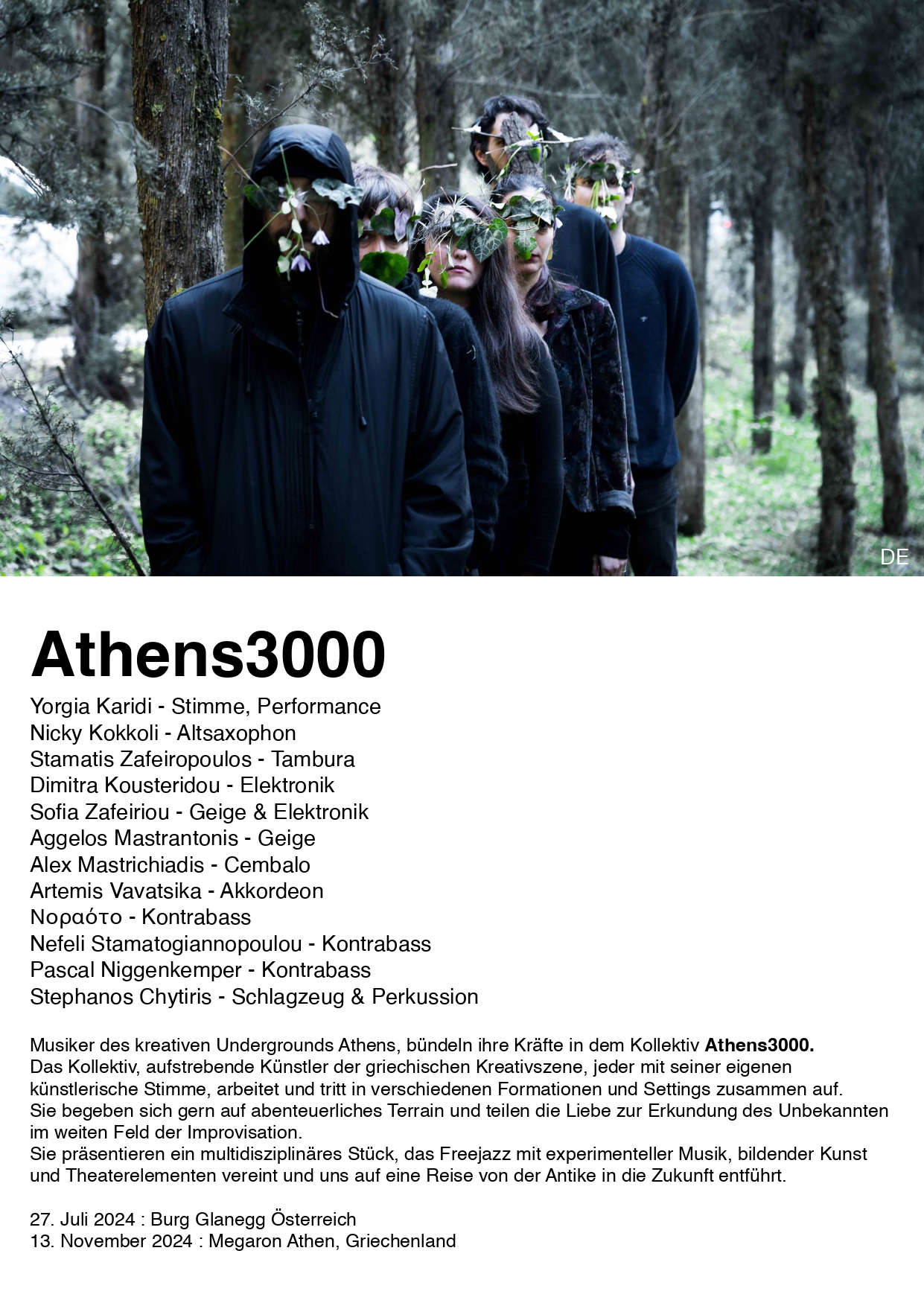 Weltpremiere! Pascal Niggenkemper stellte eine Band mit aufstrebenden MusikerInnen der griechischen Kreativszene zusammen, die sich auf ein abenteuerliches Terrain begibt, mit Musik, bildender Kunst und Theaterelementen.